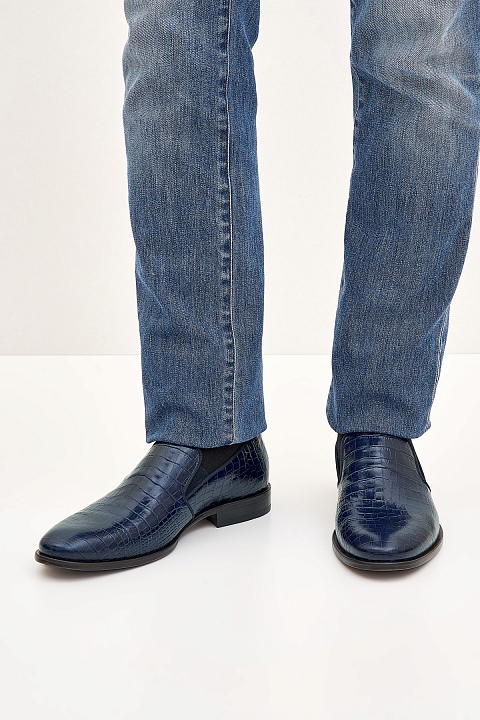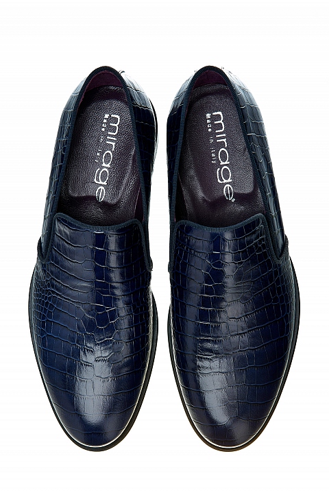 Туфли в стиле casual из глянцевой мелкозернистой кожи с тиснением под крокодила