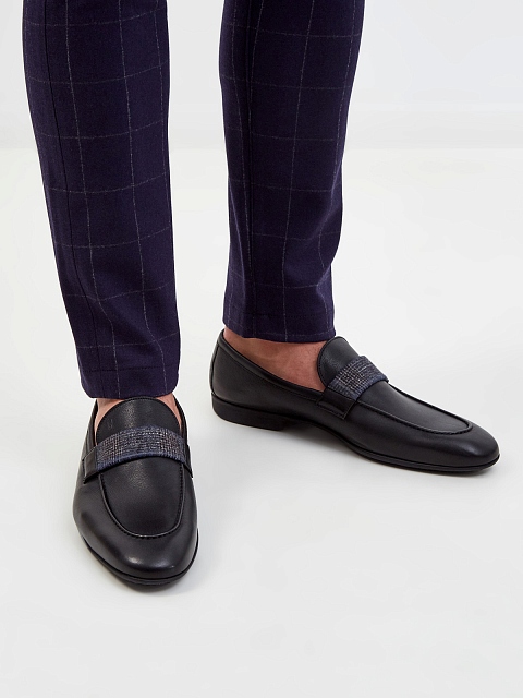 Лоферы из телячьей кожи с твидовой отделкой