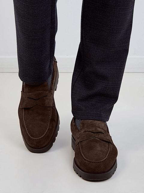 Пенни-лоферы ручной работы из замши и меха ягненка