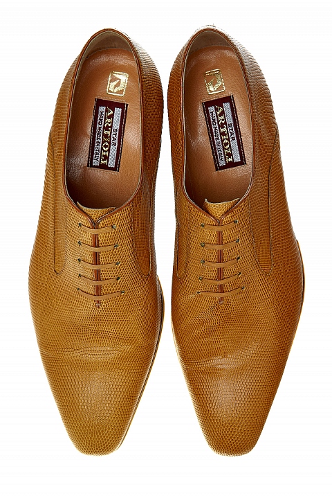 Туфли-оксфорды из фактурной кожи игуаны с контрастной подошвой