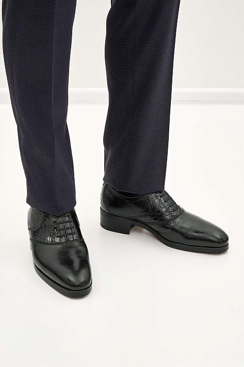Утепленные мехом оксфорды с отделкой из кожи крокодила