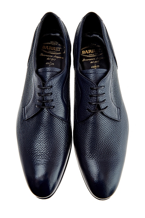 Лаконичные мужские туфли-оксфорды от Barrett полностью выполнены из мягкой кожи оленя с натуральной зернистой фактурой в глубоком темно-синем оттенке. Нотку расслабленного стиля модели придает перфорированный узор на боковых панелях, переходящий в глянцевую полированную поверхность. Детали: шнуровка в тон, невысокий наборный каблук, внутренняя отделка из кожи, закругленный мысок. Сделано в Италии.