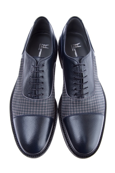 Стильные мужские оксфорды из коллекции осень-зима от Moreschi созданы из фактурной оленьей кожи в темно-синем оттенке. Эффектный образ создают вставки из ткани с принтом в ломаную клетку в серо-синей гамме, а закрытый тип шнуровки и отрезной мысок придают аутфиту строгость. Традиционная итальянская техника производства Blake делает модель легкой и пластичной несмотря на внешнюю массивность. Внутренняя кожаная отделка обеспечивает комфорт в течение дня. Сделано в Италии.