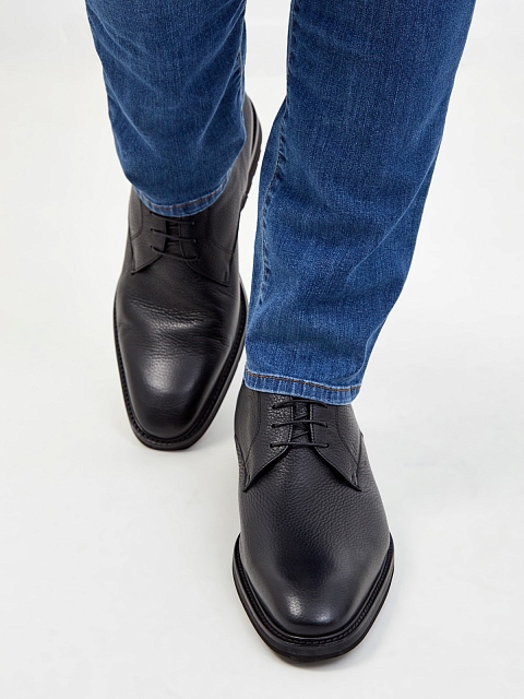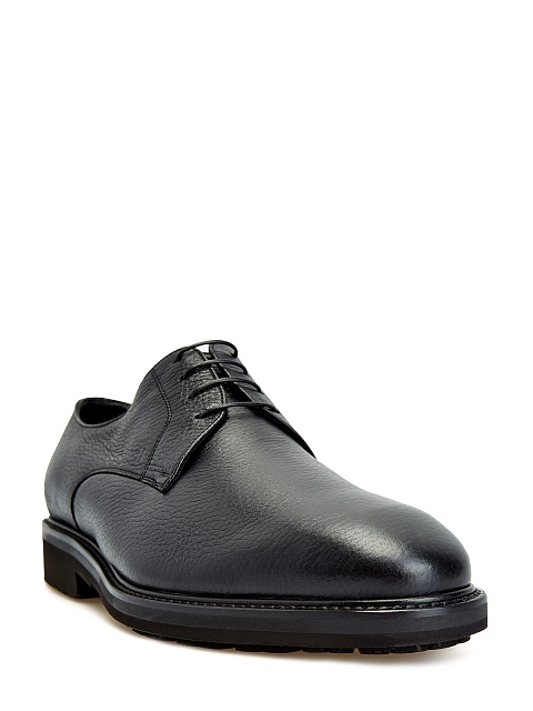 Мужские дерби ручной работы от Moreschi выполнены из крупнозернистой телячьей кожи. Лаконичный черный цвет делает модель универсальным дополнением образов в деловом и casual стилях. Противоскользящая подошва с фактурным рисунком протектора и отделка из густого меха обеспечивают максимальный комфорт даже в холодное время года. Сделано в Италии.
