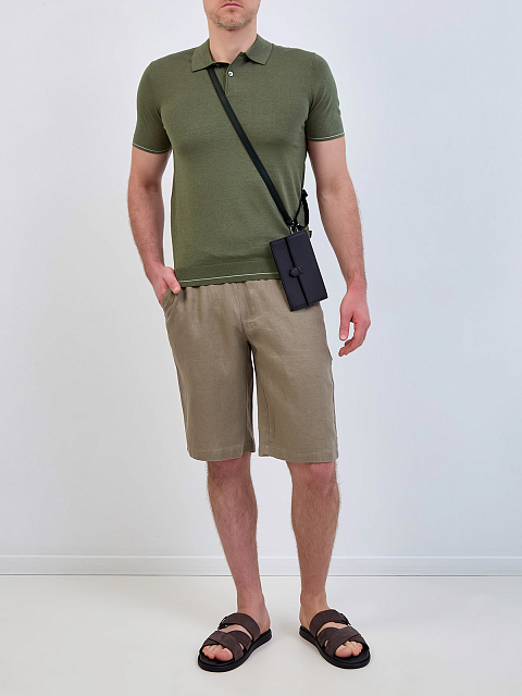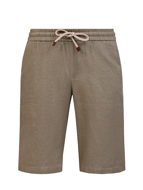 Шорты из легкой льняной ткани с вышитым логотипом и кулиской