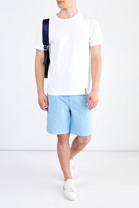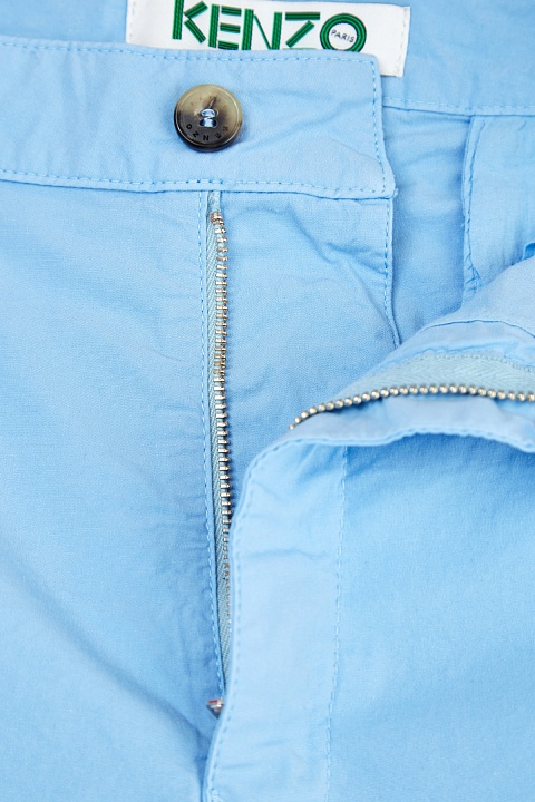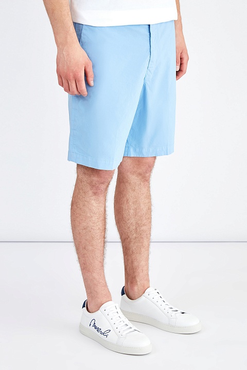 Мужские шорты в стиле oldschool от Kenzo выполнены из хлопковой ткани Stretch, которая обеспечивает комфорт в движении. Модель в универсальном голубом оттенке создана в классическом стиле: прямой силуэт дополнен диагональными прорезными карманами по бокам и карманами с бортами на спинке. Детали: притачной пояс, традиционная застежка, вышитая монограмма.