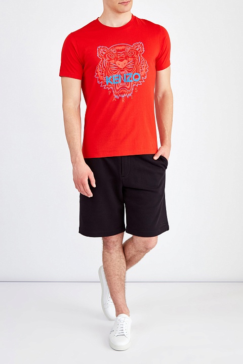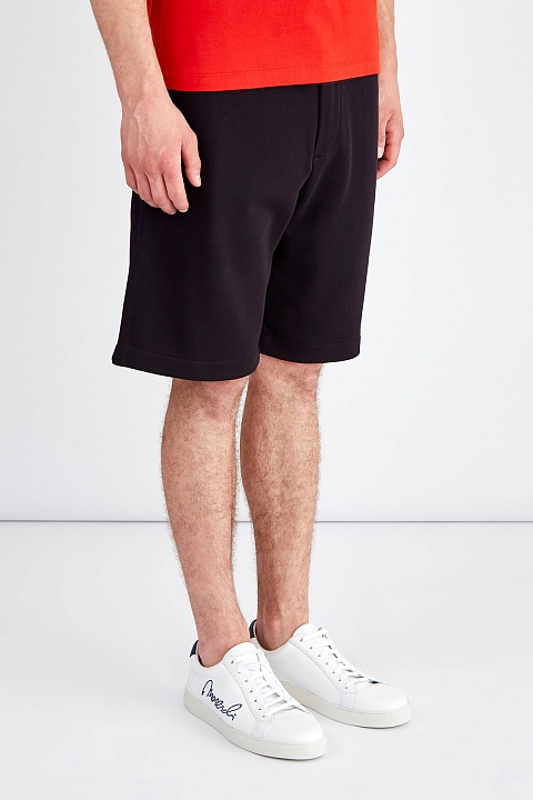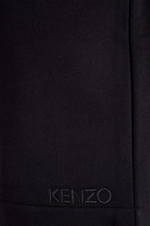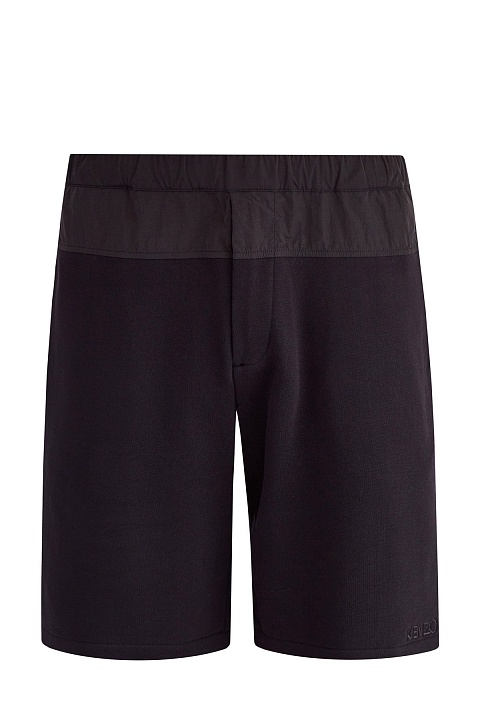 Мужские спортивные шорты от Kenzo созданы из плотного хлопкового футера в универсальном черном цвете. Особенностью модели стала нашитая деталь из контрастной по фактуре технической ткани на поясе. Комфортный свободный крой и свойства натурального материала делают модель незаменимой в путешествиях и во время активного отдыха. Детали: эластичный пояс, четыре кармана, вышитая монограмма.