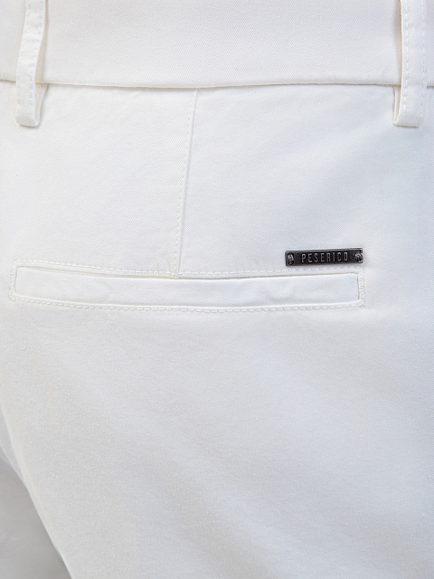 Лаконичные мужские бермуды от Peserico выполнены в универсальном белом цвете из окрашенного вручную хлопка. Дышащая ткань с добавлением эластичных волокон обеспечивает максимальный комфорт в летний сезон. Модель дополнена прорезными карманами по бокам и карманами с бортами на спинке. Детали: застежка на пуговицу, крючок и молнию, шлевки для ремня. Сделано в Италии.