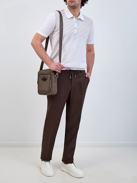 Мужские брюки в расслабленном стиле sprezzatura от Bertolo выполнены из тонкой ткани на основе шерсти, шелка и льна, дышащий материал не стесняет движений и идеально подходит для создания повседневных образов в теплое время года. Эластичный пояс на кулиске обеспечивает комфортную посадку по фигуре. Детали: четыре кармана, брендированная фурнитура, шлевки для ремня. Сделано в Италии.