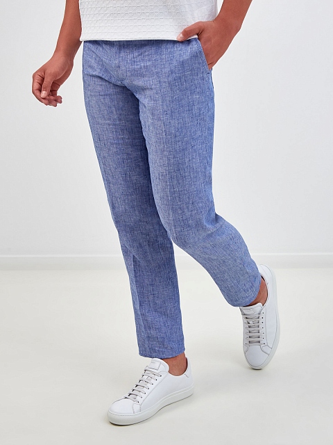 Брюки в стиле sprezzatura из натурального льна с литой эмблемой
