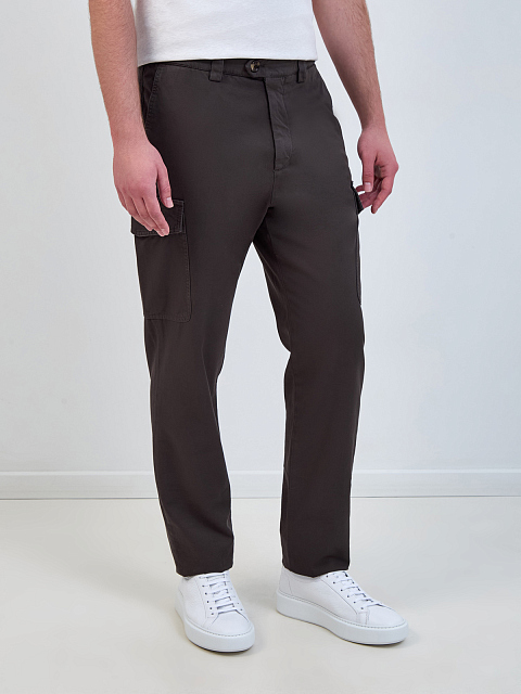 Хлопковые брюки-карго из окрашенного в готовом виде габардина