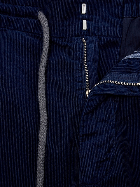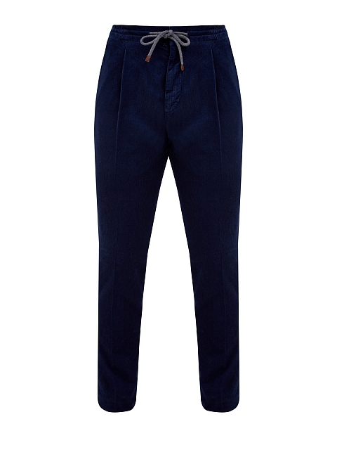 Мужские брюки свободного зауженного кроя от Brunello Cucinelli выполнены из хлопкового вельвета. Окрашивание в готовом виде подчеркивает благородную текстуру материала, которая создает органичные сочетания с объемной верхней одеждой. Заложенные складки и пояс на регулируемой кулиске придают образу расслабленное настроение в стиле sprezzatura. Детали: прорезные карманы, застежка на молнию и крючки. Сделано в Италии.