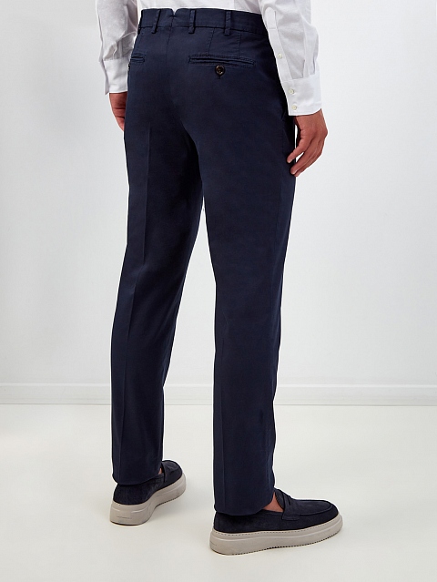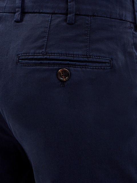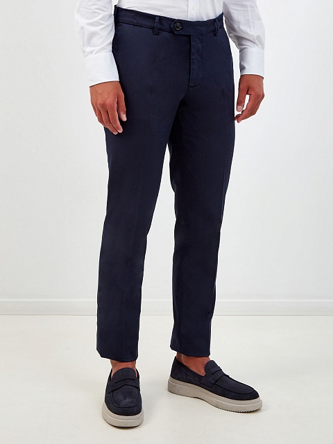 Мужские брюки в стиле casual от Brunello Cucinelli выполнены в глубоком оттенке ночного неба. Минималистичный дизайн подчеркивает плотный хлопковый габардин American Pima с характерным диагональным переплетением нитей. Модель дополнена прорезными карманами, притачным поясом с петлями для ремня и асимметричной застежкой на пуговицы и молнию. Сделано в Италии.