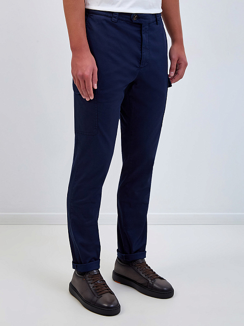 Брюки из эластичного хлопкового габардина с карманами-карго