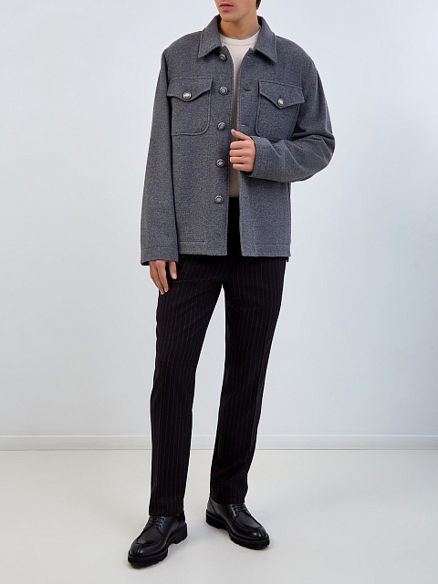 Брюки из шерстяной ткани с мелованным принтом в полоску