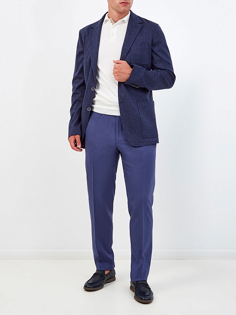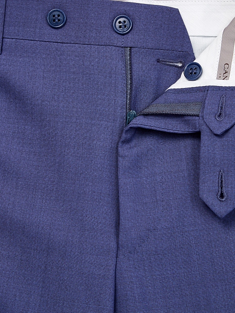 Лаконичные мужские брюки от Canali выполнены из костюмной шерстяной ткани, гладкий материал подчеркивает строгие линии кроя. Модель в универсальном синем оттенке создана в классическом стиле: прямой силуэт дополнен диагональными прорезными карманами по бокам и карманами с бортами на спинке. Детали: притачной пояс, застежка на пуговицу и молнию. Сделано в Италии.