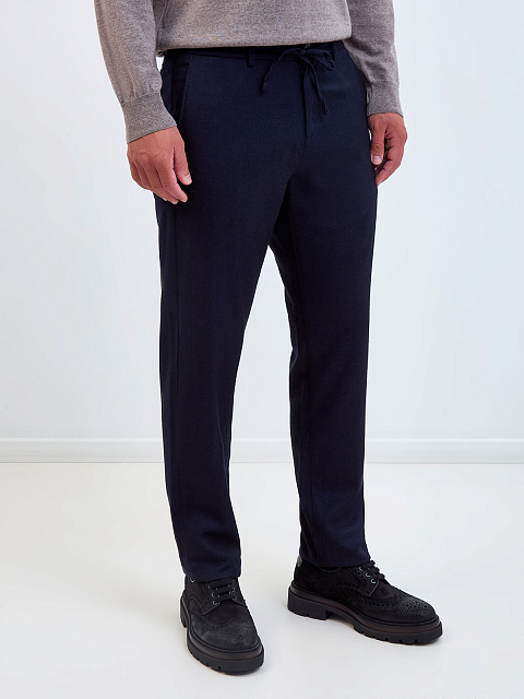 Шерстяные брюки в стиле casual с поясом на кулиске