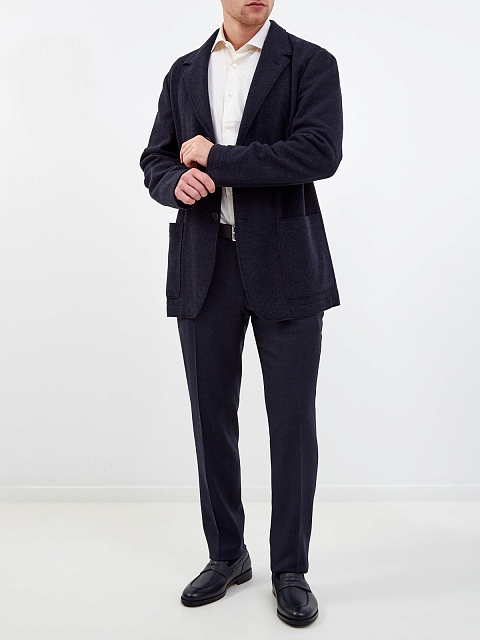 Классические мужские брюки прямого кроя от Canali созданы из благородной шерстяной ткани в синей гамме. Строгий стиль подчеркнут традиционными брючными карманами — диагональными спереди и карманами на пуговицах с бортами на спинке, а также застежкой на молнию и три пуговицы. Комфорт обеспечивает мягкая внутренняя отделка швов. Сделано в Италии.