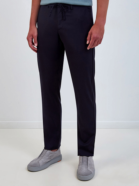 Однотонные брюки из шерстяной ткани с поясом на кулиске