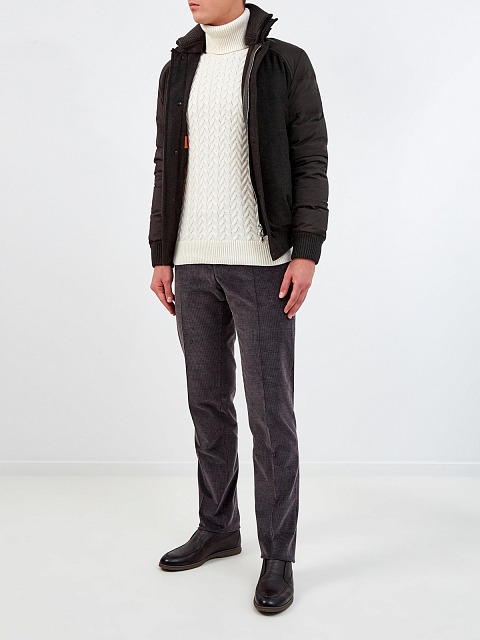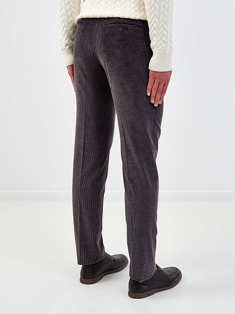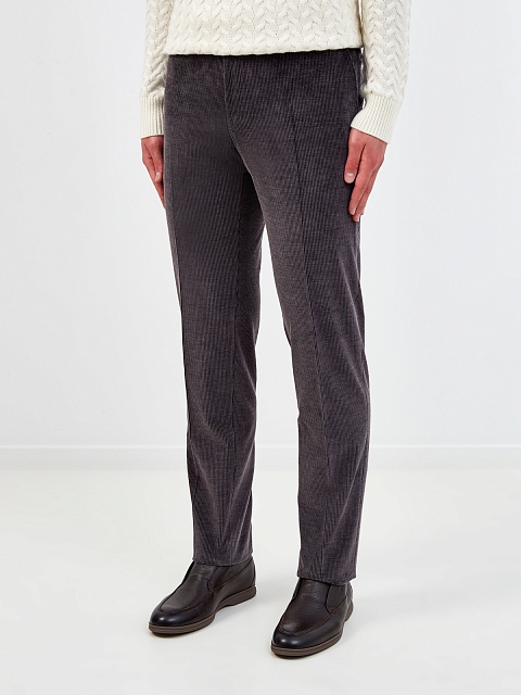 Лаконичные брюки-чинос от Canali представлены в графитово-сером оттенке. Для создания модели был выбран фактурный хлопковый вельвет с волокнами кашемира, который за счет своей текстуры органично дополнит любой образ с объемными и вязаными вещами. Простроченные стрелки придают силуэту строгость. Детали: пояс с петлями для ремня, прорезные карманы, вытачки для посадки точно по фигуре. Сделано в Италии.
