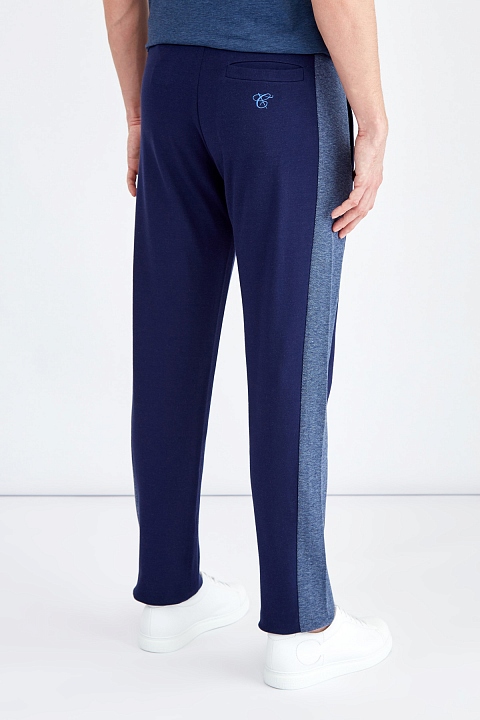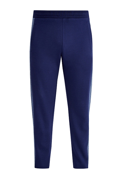 Спортивные брюки зауженного кроя с широкими лампасами из пике