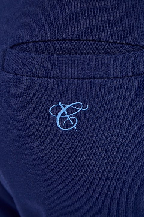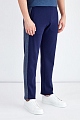 Спортивные брюки слегка зауженного кроя от Canali выполнены из эластичного хлопка в насыщенном сапфировом оттенке. Модель оснащена двумя прорезными карманами с бортами по бокам, а также одним карманом с вышитой символикой на спинке. Образ в спортивном стиле создают широкие лампасы из фактурного хлопкового пике голубого цвета. Широкий эластичный пояс обеспечивает комфортную посадку. Сделано в Италии.
