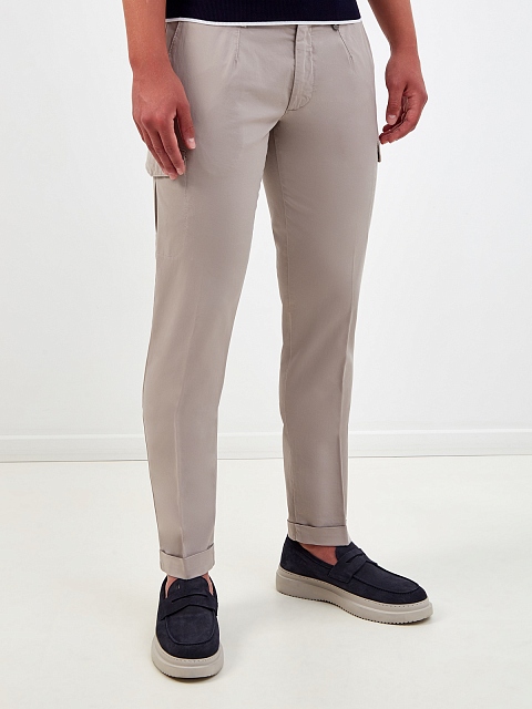 Хлопковые брюки-чинос с накладными карманами и вытачками