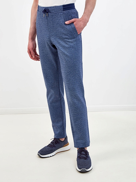 Лаконичные мужские брюки в синей гамме от Capobianco выполнены мастерами бренда вручную. Хлопковая ткань с мягкой внутренней поверхностью идеально подходит для поездок, активного отдыха и занятий спортом. Модель дополнена микро-принтом и поясом на кулиске с эластичными вставками для точной посадки по фигуре. Детали: прорезные карманы, нашивка с логотипом. Сделано в Италии.