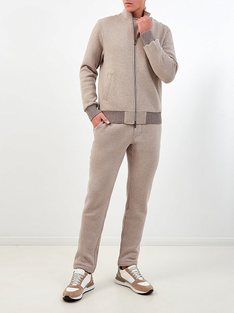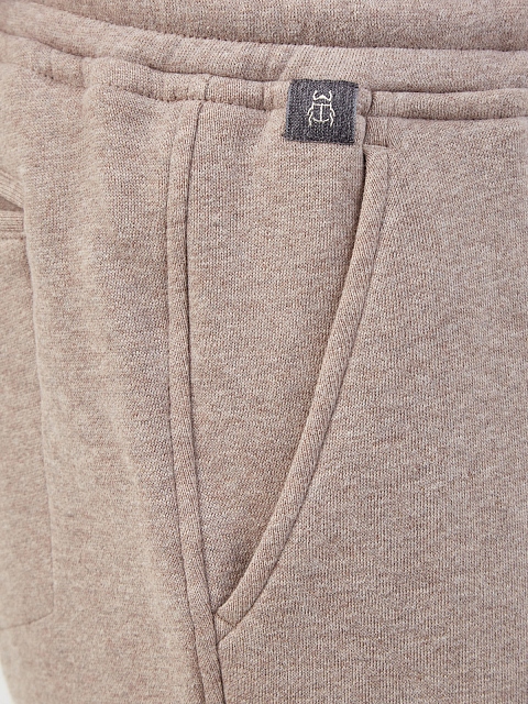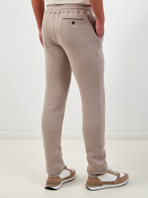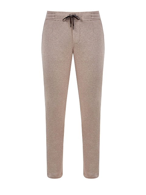 Мужские брюки от Capobianco выполнены в лаконичной меланжево-песочной гамме. Мягкая хлопковая ткань с добавлением волокон кашемира идеально подходит для поездок, активного отдыха и занятий спортом. Модель дополнена эластичным поясом на кулиске для точной посадки по фигуре. Детали: три кармана, нашивка с логотипом. Сделано в Италии.