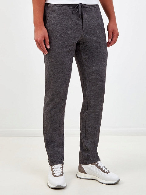 Спортивные брюки из шерсти и хлопка с поясом на кулиске