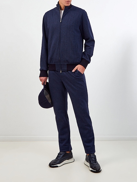 Брюки в спортивном стиле из меланжевой шерсти и хлопка