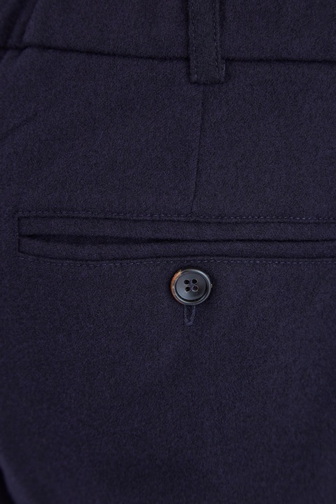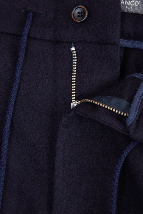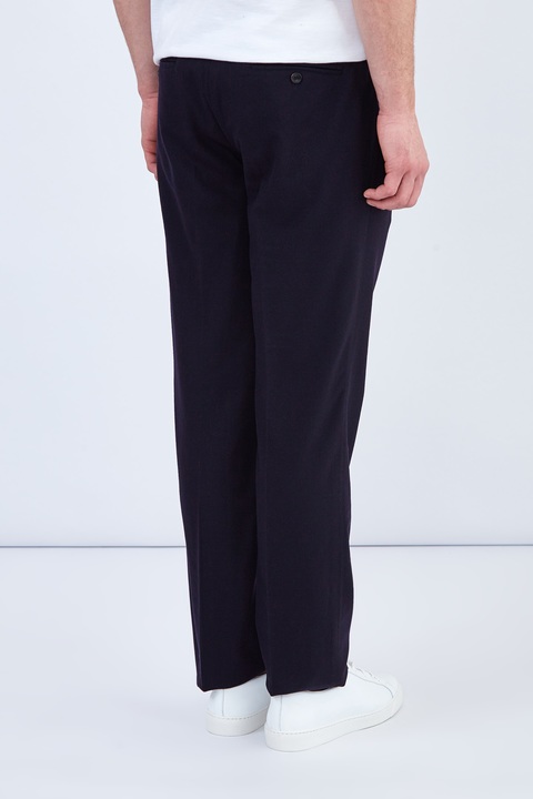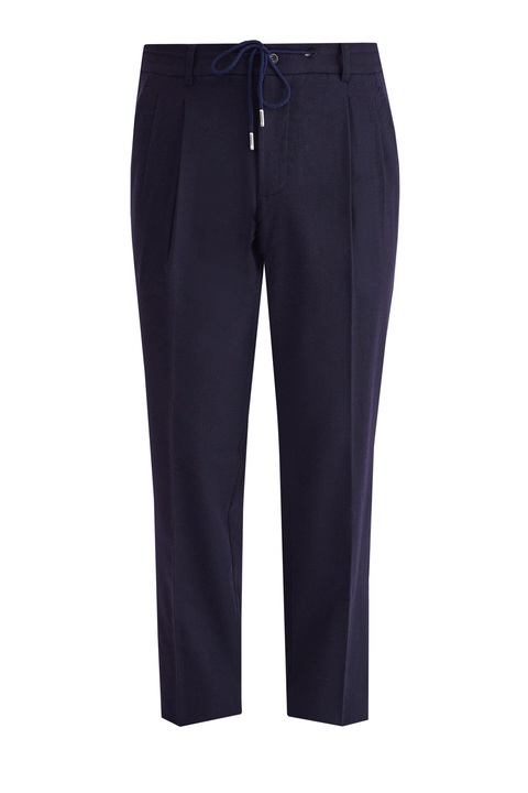 Лаконичные мужские брюки прямого кроя от Capobianco выполнены в синем цвете из шерстяной ткани с добавлением волокон кашемира для придания изделию дополнительной мягкости. Модель с мягкими заложенными складками от линии талии дополнена диагональными карманами и классическим брючным центральным швом. Притачной пояс на контрастной кулиске завершает образ в стиле sportcasual. Сделано в Италии.