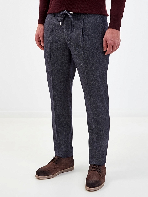 Мужские брюки в расслабленном стиле от Cortigiani выполнены из плотной ткани на основе шерсти и хлопка, фактурный материал не стесняет движений и идеально подходит для создания повседневных образов. Эластичный пояс на кулиске обеспечивает комфортную посадку по фигуре. Детали: заложенные складки, четыре кармана, брендированная фурнитура. Сделано в Италии.