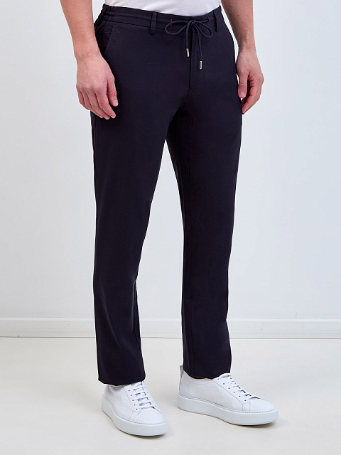 Брюки из хлопка с эластичными вставками и поясом на кулиске