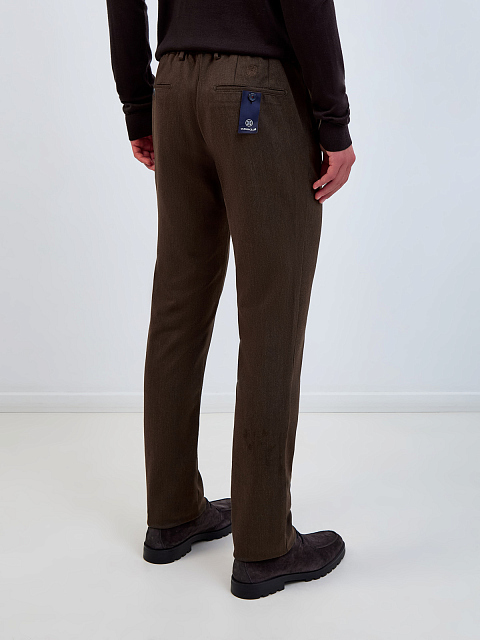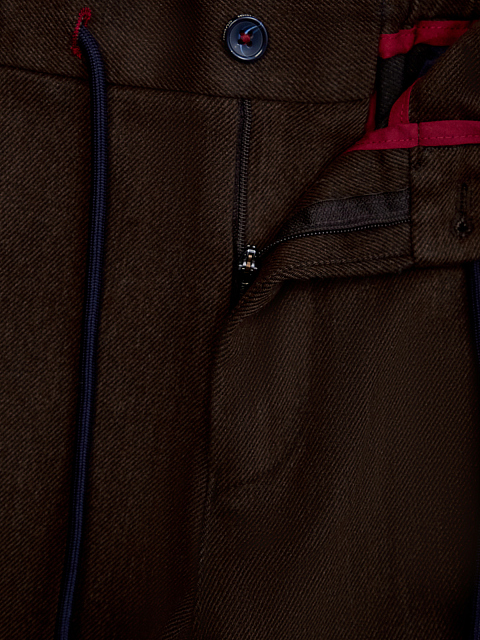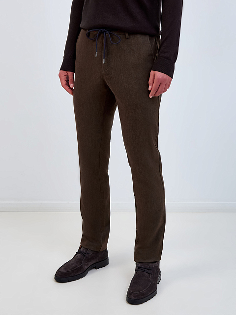 Однотонные брюки из габардина с логотипом и поясом на кулиске