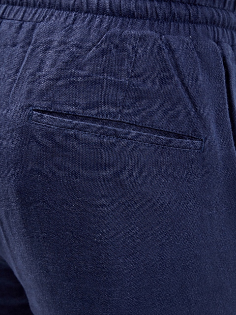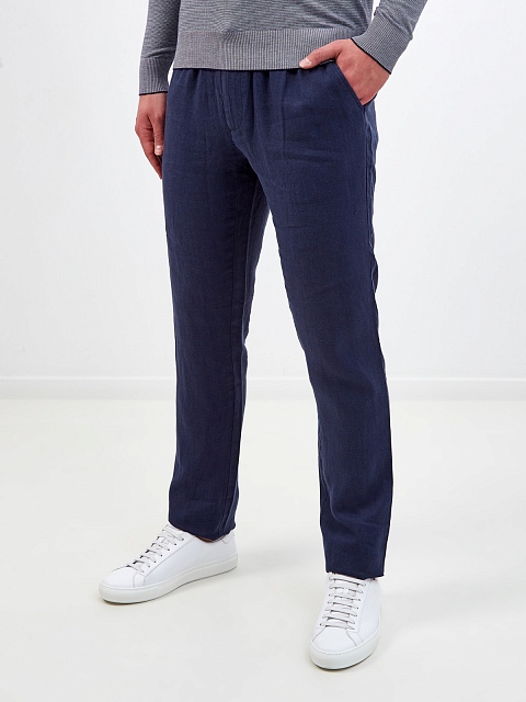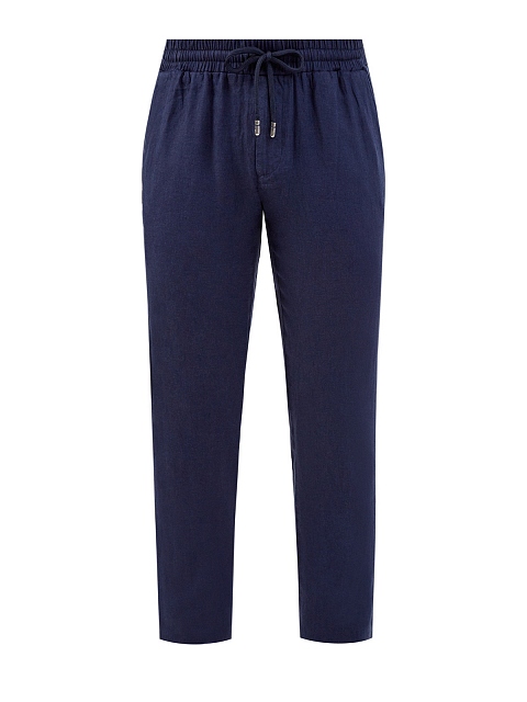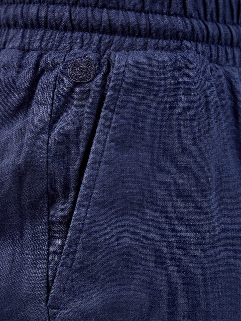 Льняные брюки с эластичным поясом и логотипом в тон
