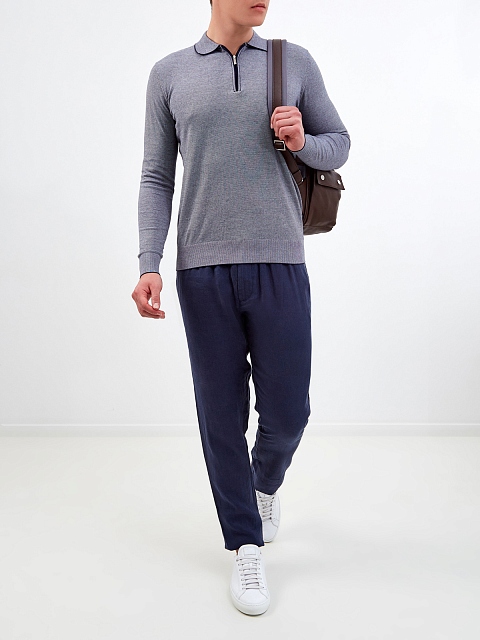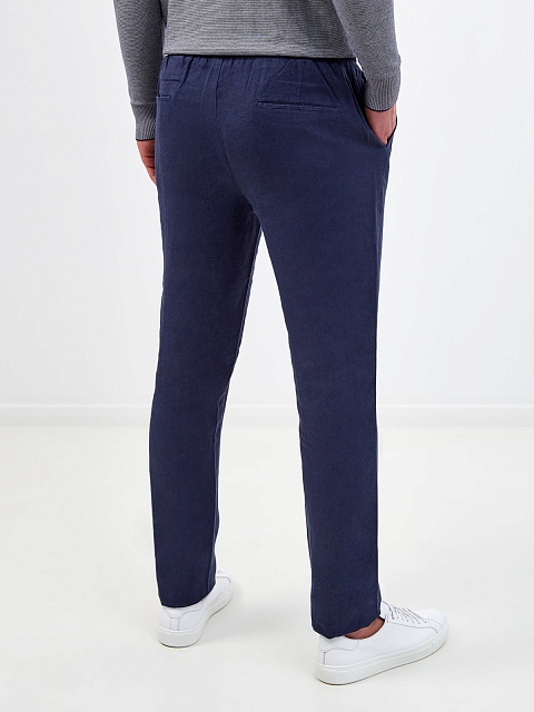 Мужские брюки от Cudgi выполнены из натурального льна в оттенке индиго. Легкая ткань со слегка неоднородной текстурой идеально подходит для создания летних образов в стиле sprezzatura. Прорезные карманы и регулируемая кулиска придают линиям расслабленное настроение. Детали: эластичный пояс для комфортной посадки, вышитый логотип бренда.