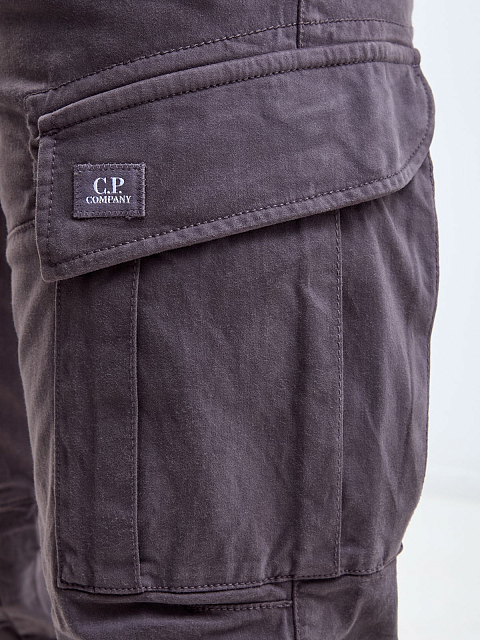 Окрашенные вручную брюки от C.P. Company созданы из эластичного хлопка с сатиновой текстурой. Модель комфортного зауженного кроя Ergonomic Fit дополнена карманами-карго и прорезными карманами, фирменный стиль изделия подчеркивает нашивка с логотипом в тон. Детали: шлевки для ремня, застежка на пуговицу и молнию.