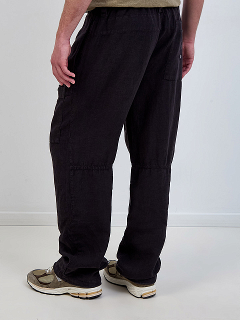 Свободные брюки из окрашенного вручную льна с карманом-карго
