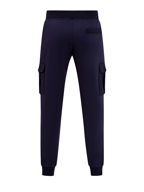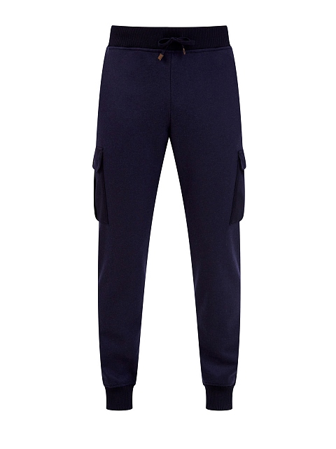 Лаконичные мужские джоггеры в насыщенном оттенке индиго от Eleventy. Модель из шерстяной ткани с полностью натуральным составом идеально подходит для холодного времени года. Объемные карманы в стиле карго на боковых планках вносят неформальный штрих в повседневный образ. Детали: эластичные манжеты и пояс на кулиске, простроченные швы. Сделано в Италии.