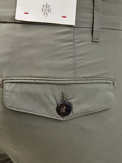 Базовые брюки-чинос от Eleventy выполнены из гладкого хлопка. Выверенный состав ткани делает облегающий крой максимально комфортным в движении. Асимметричная застежка на пуговицы и молнию придает изделию нотку фирменного итальянского шика. Детали: петли для ремня, традиционные карманы по бокам и на спинке. Сделано в Италии