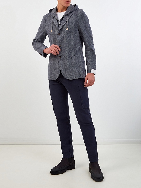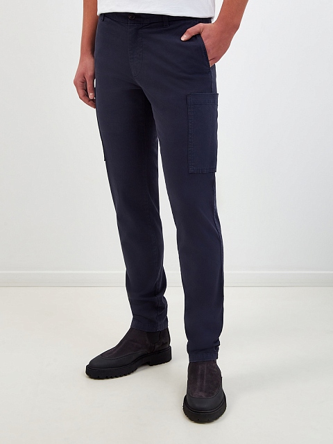 Мужские брюки от Eleventy созданы из гладкого хлопка в оттенке ночного неба. Выверенный состав ткани с добавлением эластичных волокон делает крой максимально комфортным в движении, накладные макро-карманы придают изделию нотку фирменного итальянского шика в стиле sprezzatura. Детали: шлевки для ремня, застежка на молнию и пуговицы, прорезные карманы. Сделано в Италии.