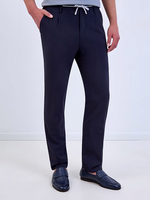 Брюки из тонкой шерсти Platinum с защипами и кулиской