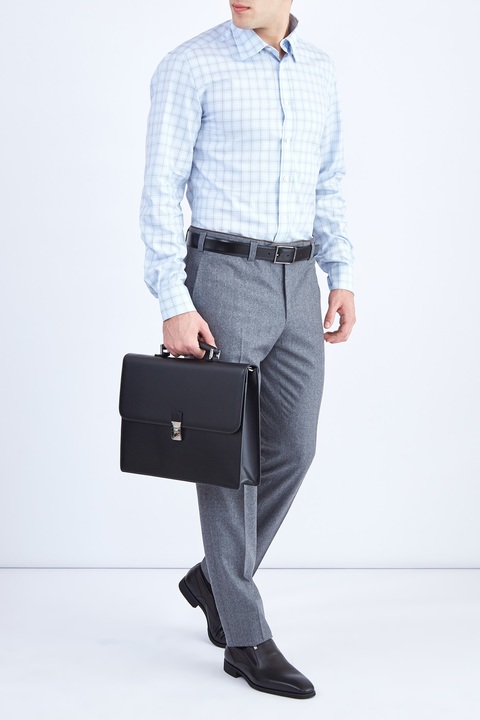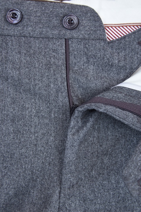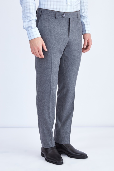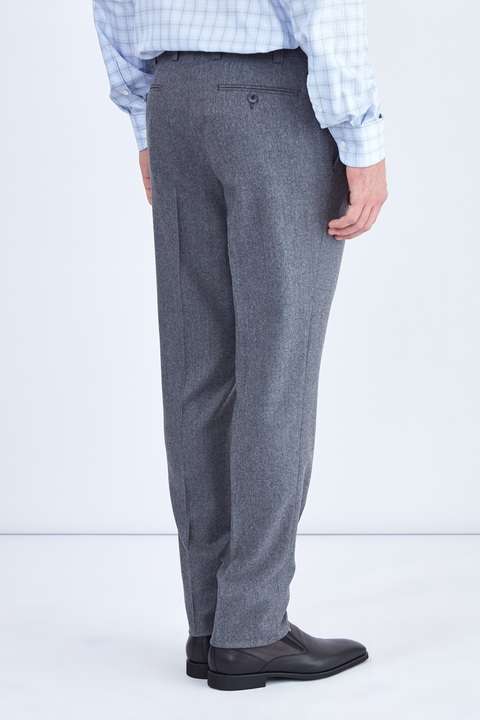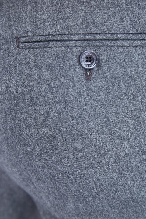 Однотонные мужские брюки прямого кроя от Luciano Barbera выполнены из тонкой шерстяной фланели в неоднородном жемчужно-сером оттенке. Модель на средней посадке дополнена притачным поясом с замшевым кантом по верхней кромке. Детали: внутренняя отделка из хлопка и модала, пять прорезных карманов, застежка на пуговицы и молнию. Сделано в Италии.