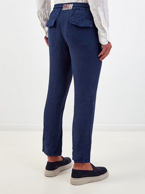 Брюки из льняной ткани с эластичным поясом на кулиске