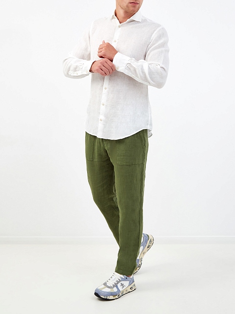 Брюки из дышащего льна с поясом на кулиске