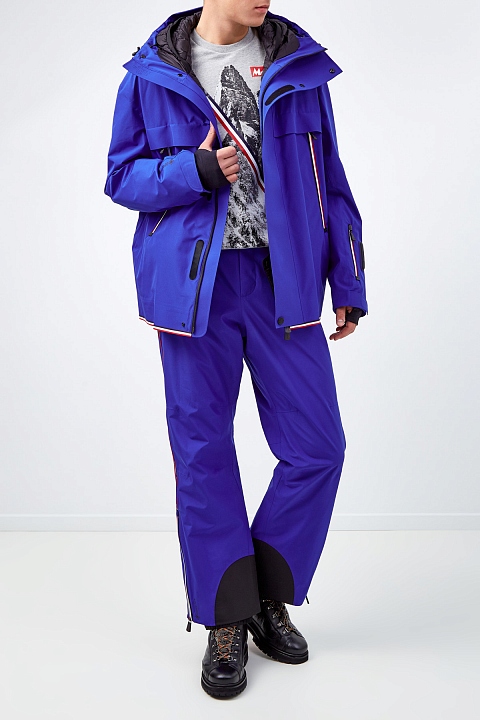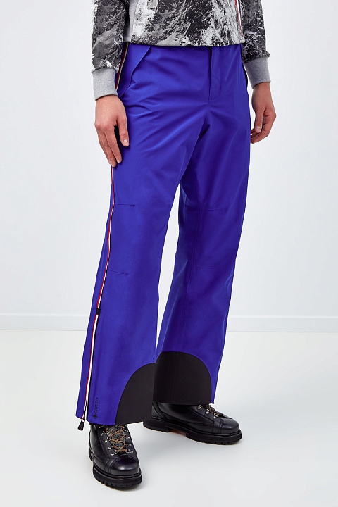 Горнолыжные брюки от Moncler — идеальное решение для самых разных погодных условий. Внешний слой создан из ткани GORE-TEX 2L, которая обеспечивает надежную защиту от ветра, снега и дождя, оставаясь при этом дышащей. Крой предусматривает вытачки на коленях для комфорта в движении. Внутренняя часть выполнена из флиса, низ оснащен снегозащитными гетрами с крючками для крепления к ботинкам. Швы и молнии надежно загерметизированы. Детали: кольцо для крепления перчаток, рефлектор системы спасения в лавинах RECCO®.
