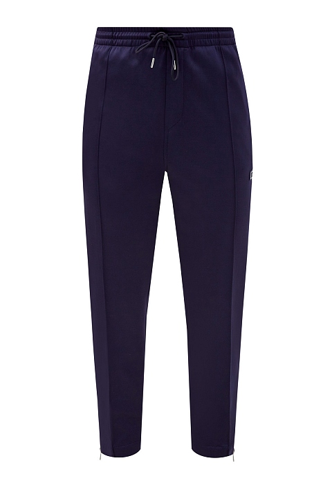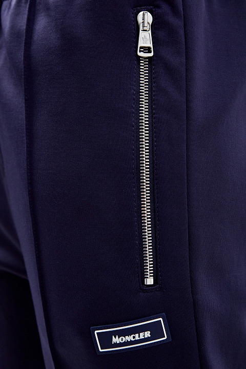 Спортивные мужские брюки из технического джерси от Moncler. Сатиновый блеск по поверхности придает образу штрих в стиле эпохи 90-х, а внутренняя отделка из хлопка обеспечивает максимальный комфорт. Простроченные стрелки визуально структурируют силуэт. Детали: объемный логотип из силикона, разрезы на молниях внизу, два прорезных кармана по бокам, один накладной карман на спинке.