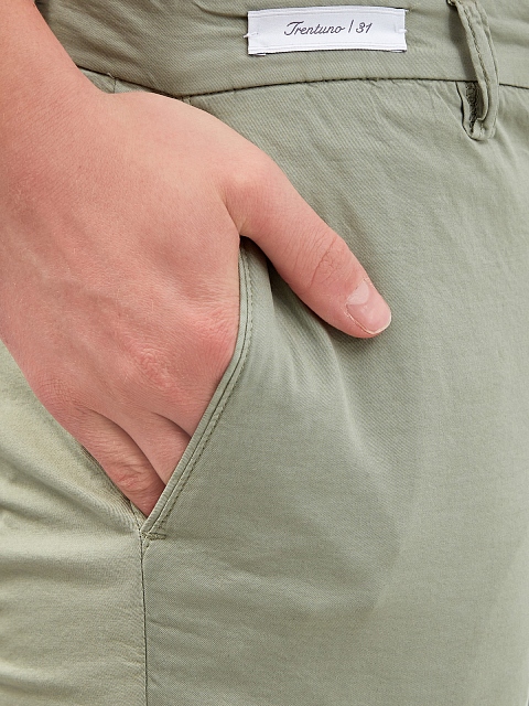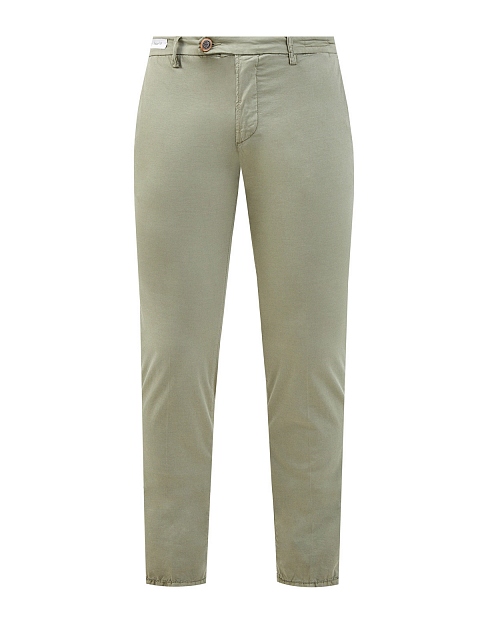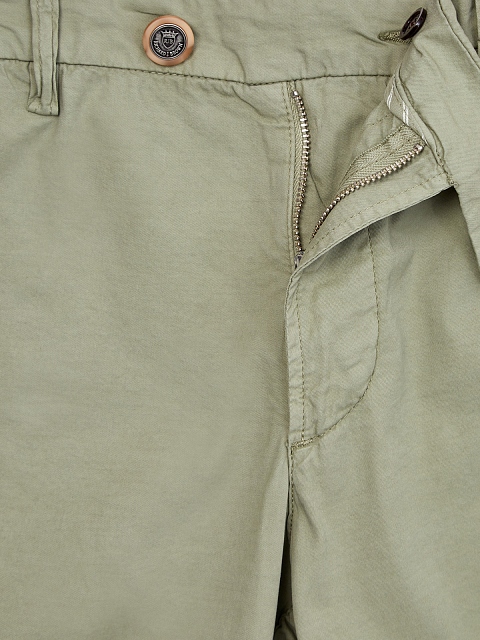 Мужские брюки в расслабленном стиле из коллекции Luxury от Richard J. Brown. Модель выполнена в приглушенном оливковом оттенке, дышащий хлопковый материал с добавлением натурального шелка идеально подходит для летнего сезона. Детали: пять карманов, нашивка из замши с литым логотипом на поясе, фурнитура ручной работы, асимметричная застежка на пуговицу и молнию.