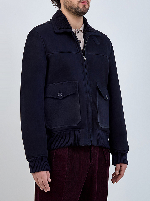 Дубленый бомбер Icon с ширлингом и макро-карманами